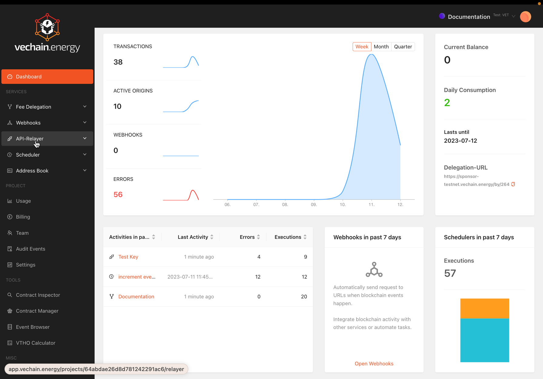 In the dashboard, you can find combined information about the API-Key-Requests, Fee Delegation, and the Transaction, providing instant insight into each transaction.